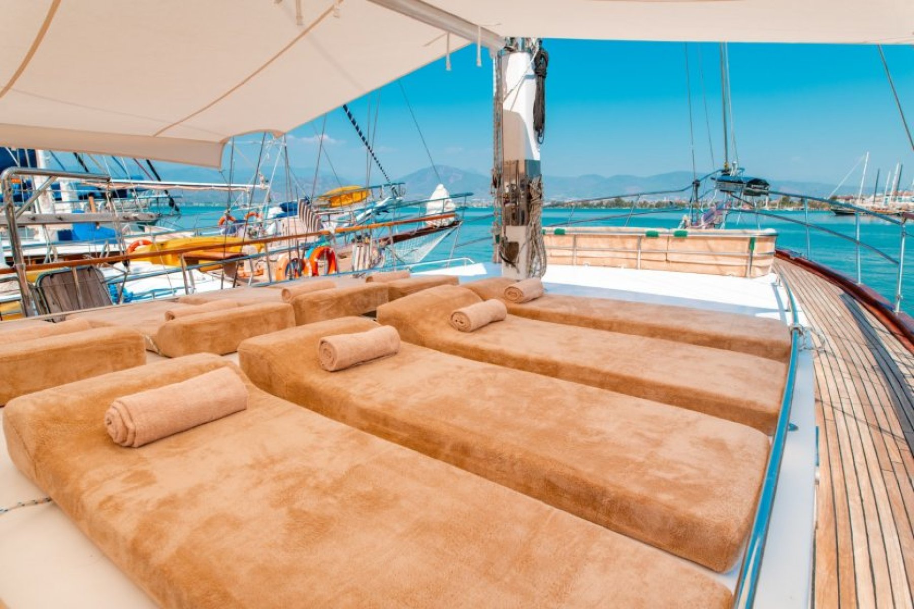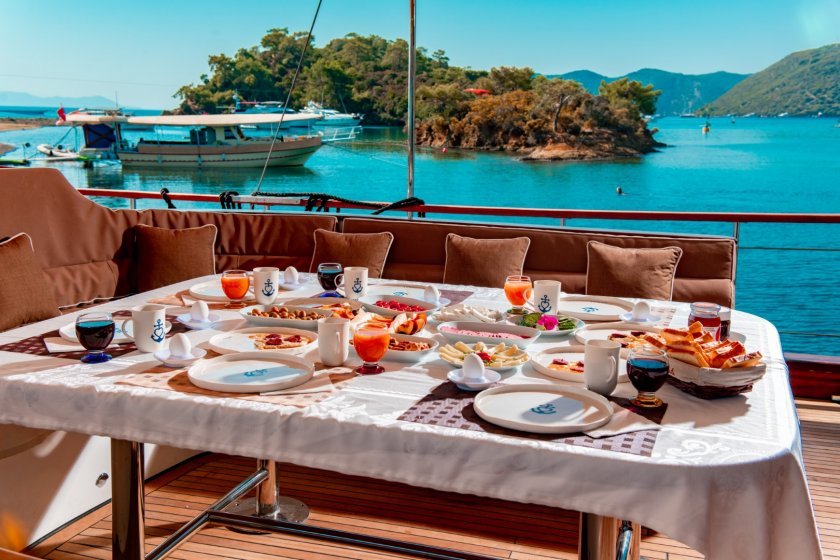 Navigating the Fethiye route with Afilli is perfect for groups who want to explore where the green forests meet turquoise waters. This gulet acts as a floating home, combining high service standards with a peaceful atmosphere. Every detail is designed to transform a standard voyage into a premium maritime escape. It is a top choice for travelers prioritizing privacy and luxury.