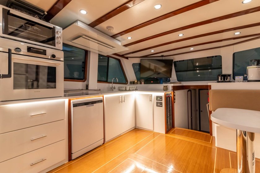 A professional three member crew consisting of a captain, a chef, and a deckhand is dedicated to providing seamless service. Whether you are lounging on the expansive aft deck or sunbathing on the foredeck’s plush loungers, every area of the boat is optimized for relaxation. Specializing in tours through the breathtaking bays of Fethiye, Göcek, and Marmaris, the Bernis is the ultimate choice for a serene Turkish Riviera holiday.