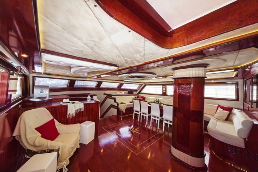 The Perla Del Mar 2 is a premier deluxe gulet that stands out among Marmaris boat rental options, especially for those seeking a jacuzzi on board. Built in 2007 and renovated in 2020, this 36 meter vessel offers a sophisticated and spacious environment. It is perfectly designed for a high end blue cruise, combining modern luxury standards with the traditional charm of a handcrafted wooden yacht.