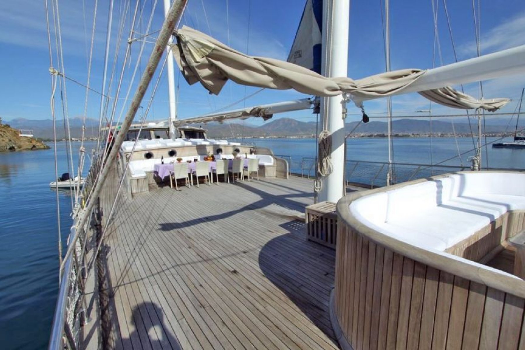The Prenses Selin is a magnificent 37 meter deluxe gulet, offering one of the most spacious and comfortable turkey yacht tour experiences in Fethiye. Originally launched in 2005 and fully renovated in 2020, this vessel is meticulously maintained to provide a high standard retreat for large families and groups. With its impressive size and elegant design, it stands as a premier choice for those seeking luxury yacht cruise on the Mediterranean waters.