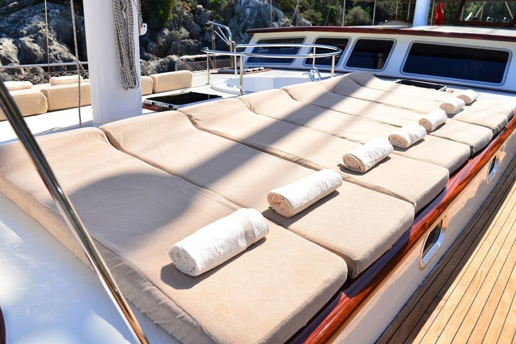 The Queen Lila is a sophisticated luxury gulet charter choice, originally crafted in the Fethiye Shipyard in 2004 and elevated to premium standards following an extensive 2020 renovation. Constructed with elegant teak and mahogany wood, this 30 meter long and 7 meter wide vessel provides a stable and stylish platform for an exceptional maritime journey. It is specifically designed for those who appreciate fine craftsmanship combined with modern maritime technology, making it a standout option for exploring the Mediterranean's most beautiful coastlines.