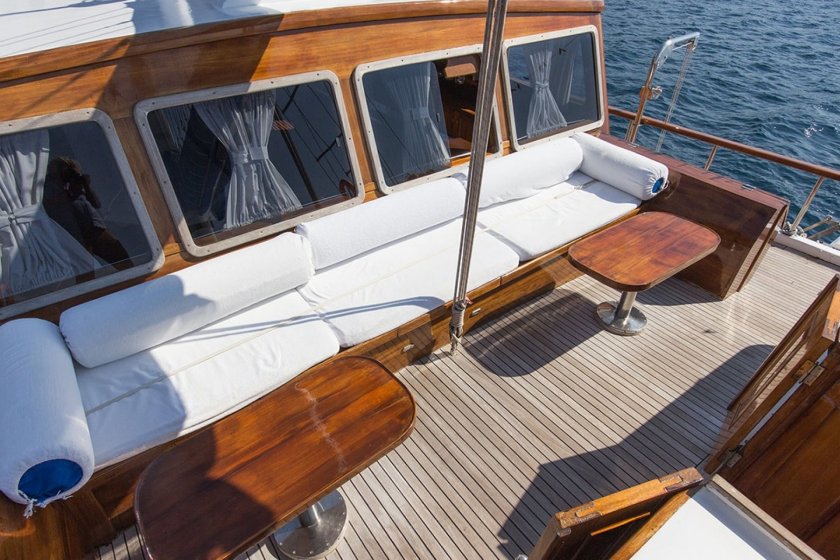 The yacht features 8 cabins (4 double and 4 triple), comfortably accommodating up to 20 guests on Turkish routes and up to 12 for Greek Island itineraries. Each cabin includes a private shower and WC, with 8-10 hours of daily air conditioning provided. A professional 4 member crew is dedicated to providing high-quality service, ensuring a seamless and relaxing sailing holiday experience for every passenger.